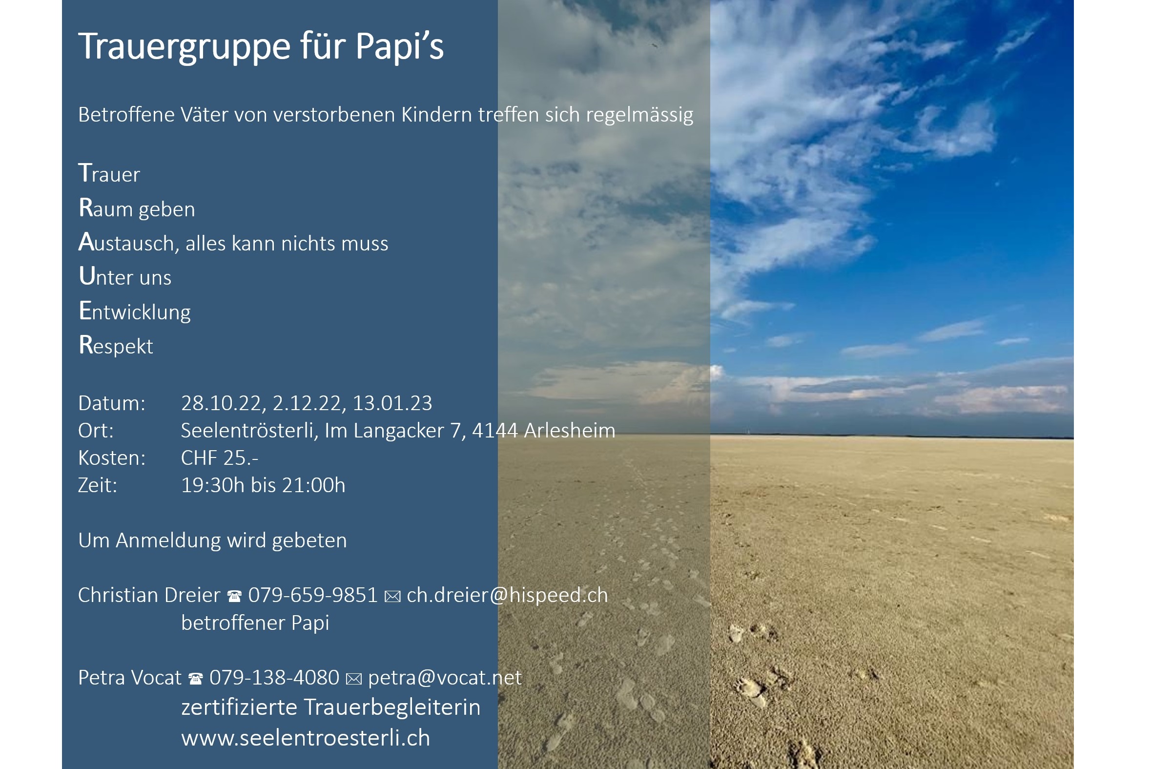 Verbindliche Anmeldung an: Petra Vocat +41-79-138-4080 oder EMail petra@vocat.net |